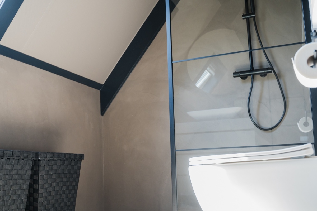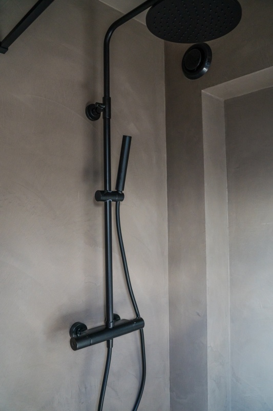 Voor een bestaande woning in Genemuiden wouden de bewoners graag iets anders in de badkamer. De mensen waren tegels eigenlijk wel zat en wouden gaan voor gemak. Betonstuc in de badkamer is hiervoor geweldig. Je hebt geen last van schimmelvorming in de voegjes en het water loopt langs de muren zo naar beneden door de speciale coating.