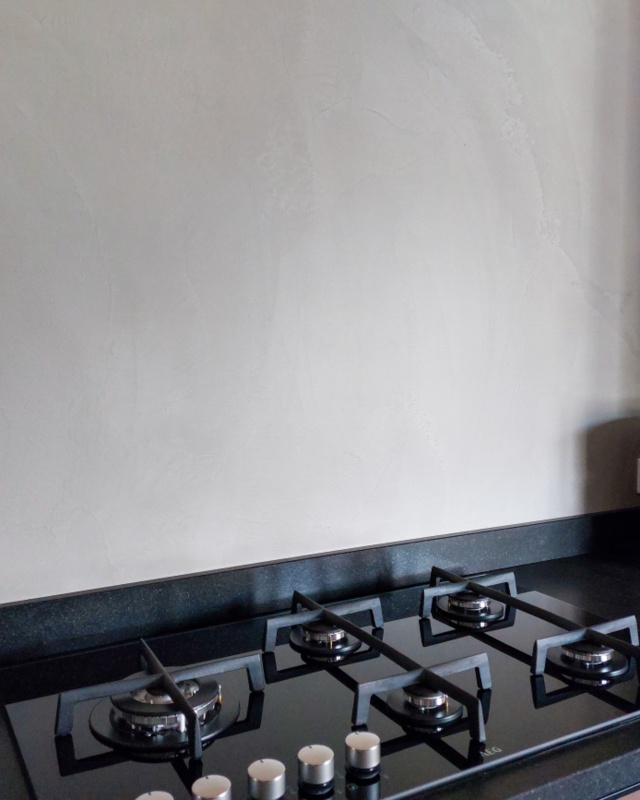 Voor een bestaande woning in Genemuiden mochten wij de keukenachterwand voorzien met betonstuc. Door de speciale coating is de achterwand goed afneembaar. Dit is zeer belangrijk in een keuken met al het vet en opspattend water.